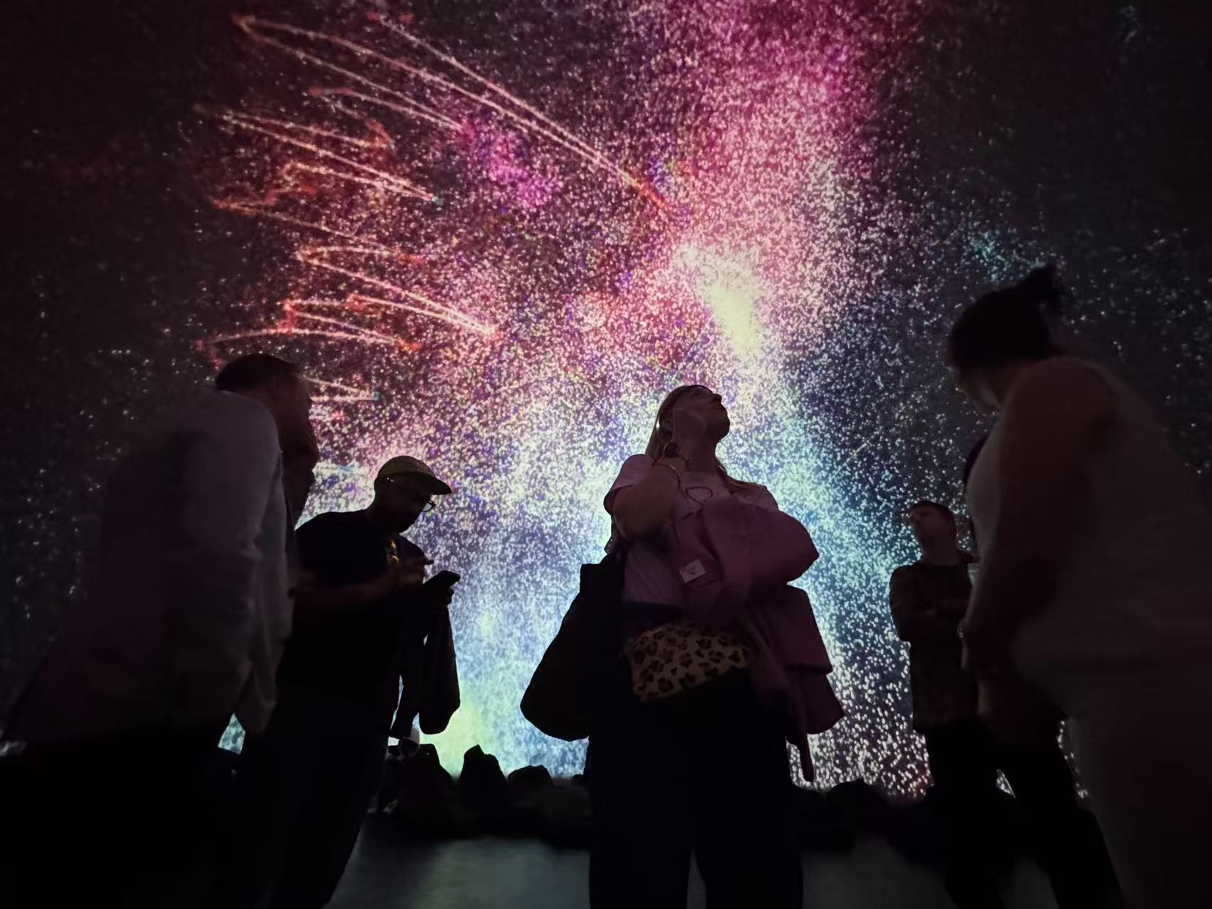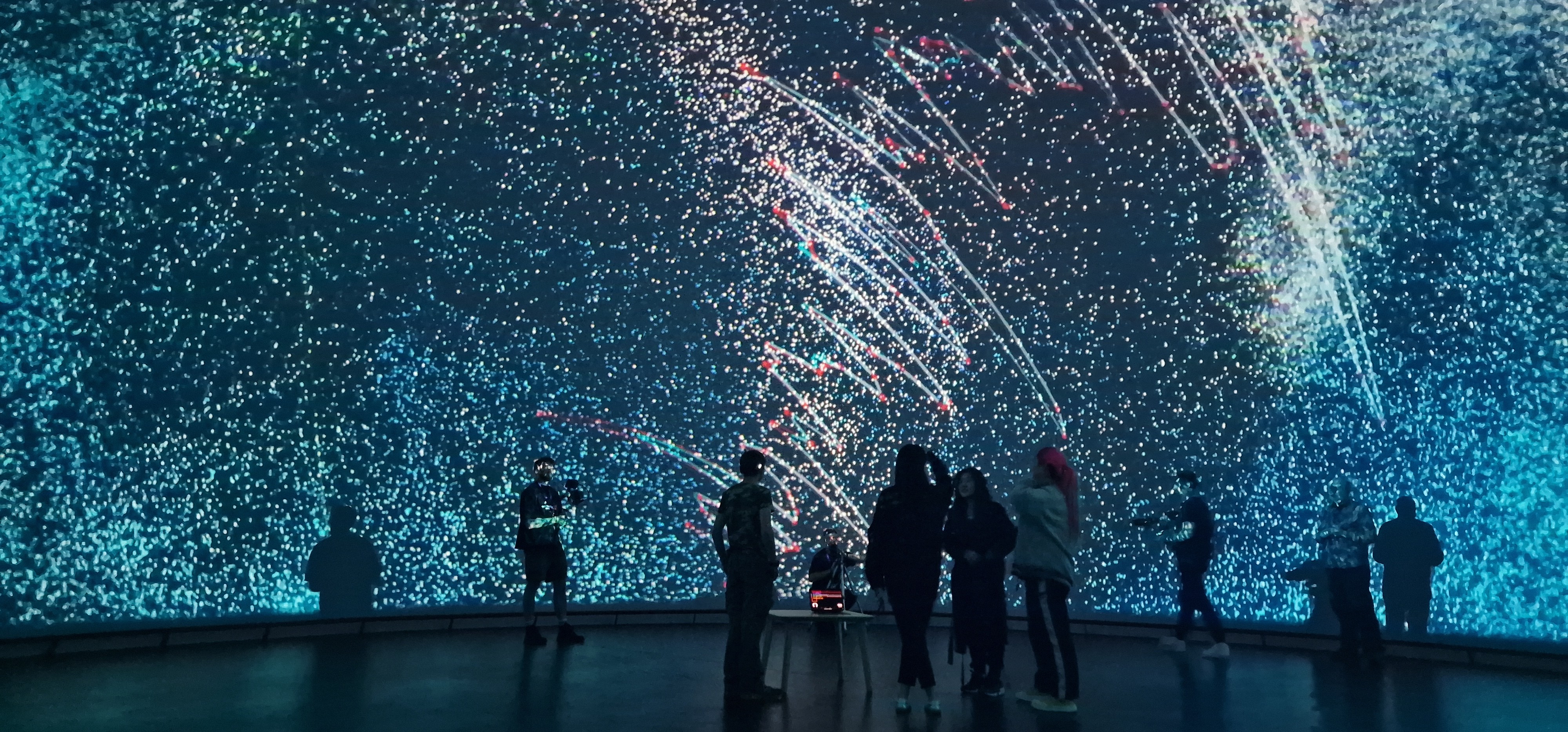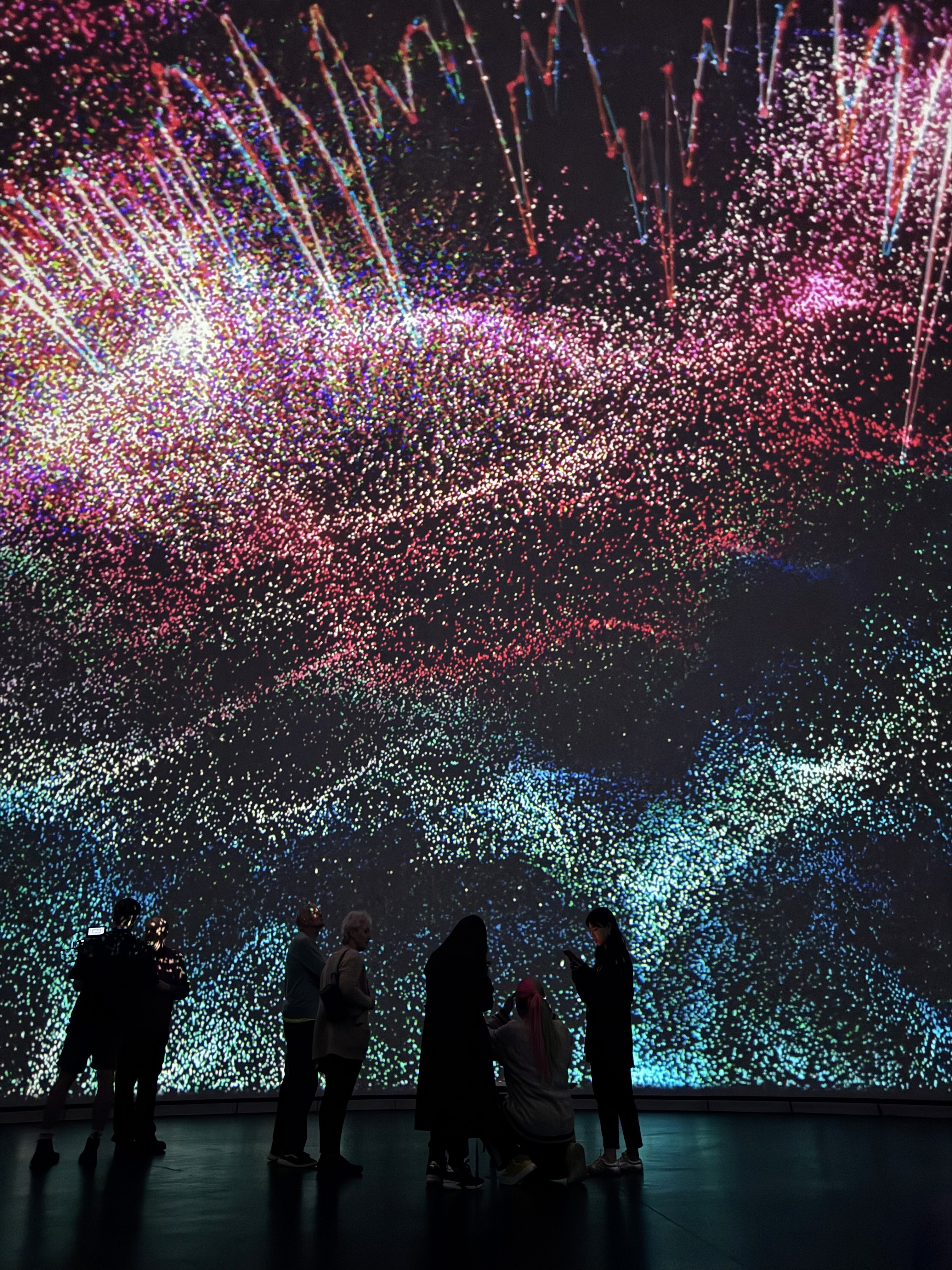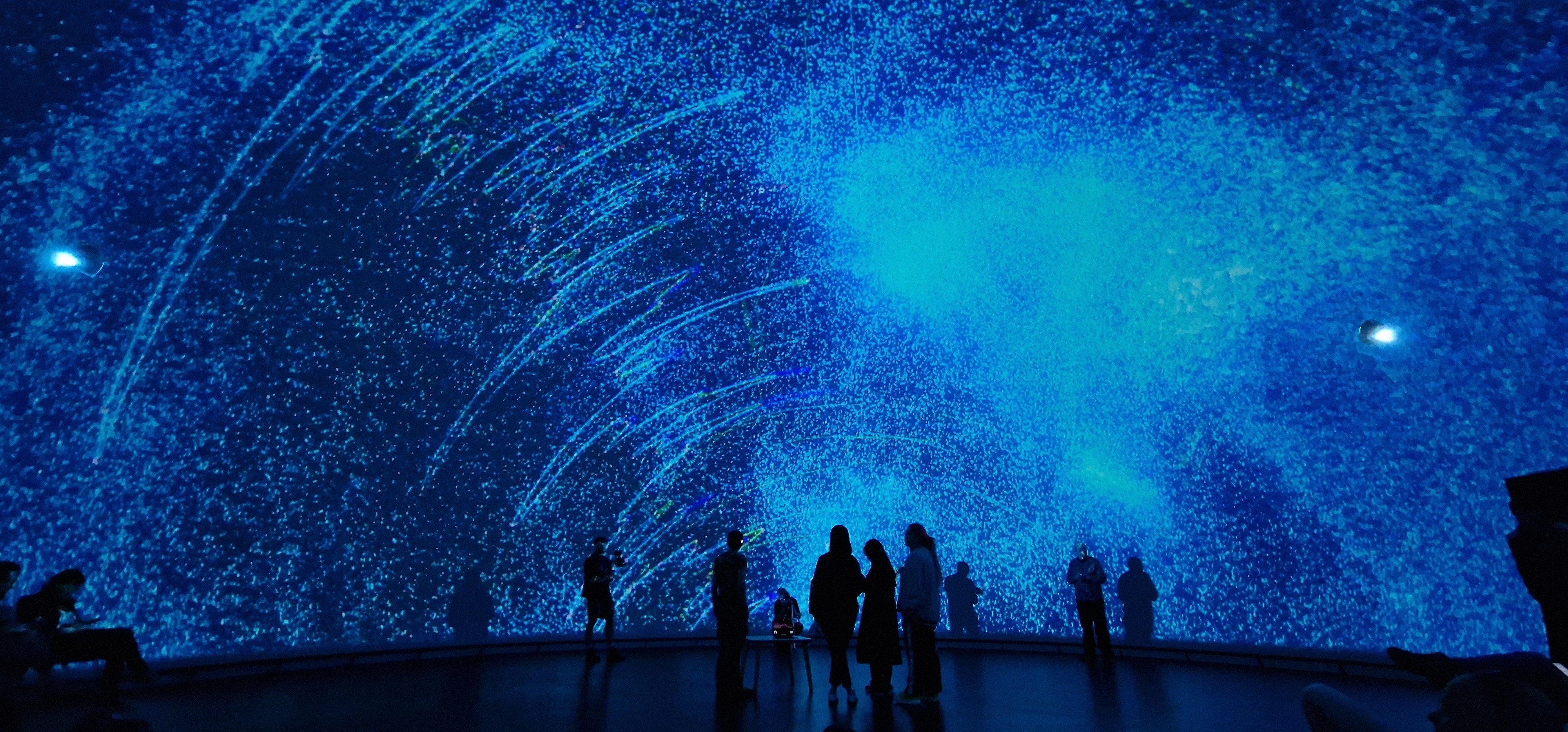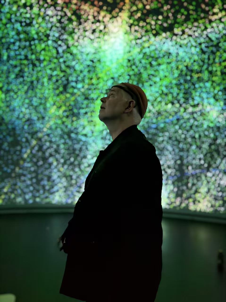 Inside the dome, participants’ brainwave activity continuously modulates a generative particle system—shaping parameters such as motion, density, and color—thereby creating an evolving visual landscape that responds to inner affective states. The resulting imagery draws on astronomical references like nebulae and cosmic structures, linking psychological experience to spatial and cosmological scales.